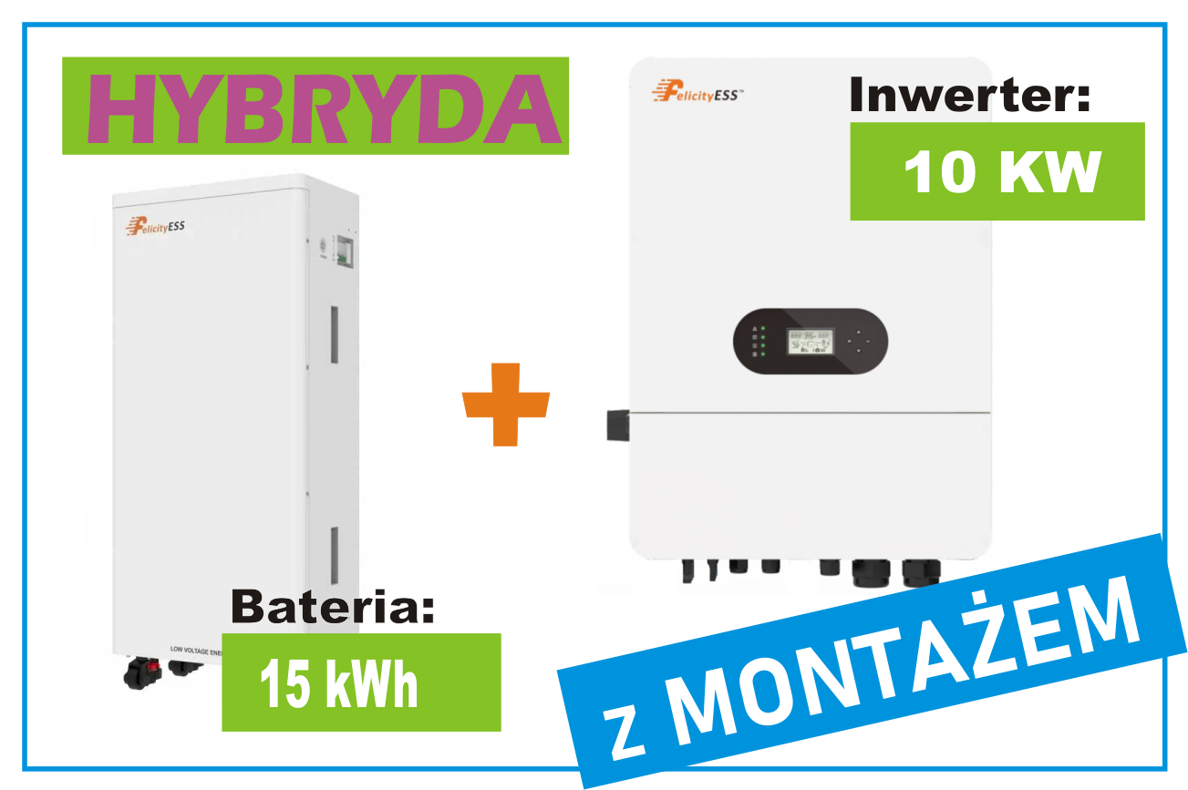 Zestaw, Inwerter hybrydowy 10KW + Magazyn energii 15KWh z Montażem
