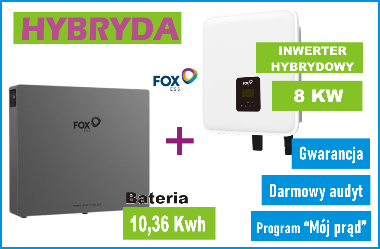 Zestaw hybrydowy Inwerter 8KW + Magazyn energii 10.36KWh z Montażem