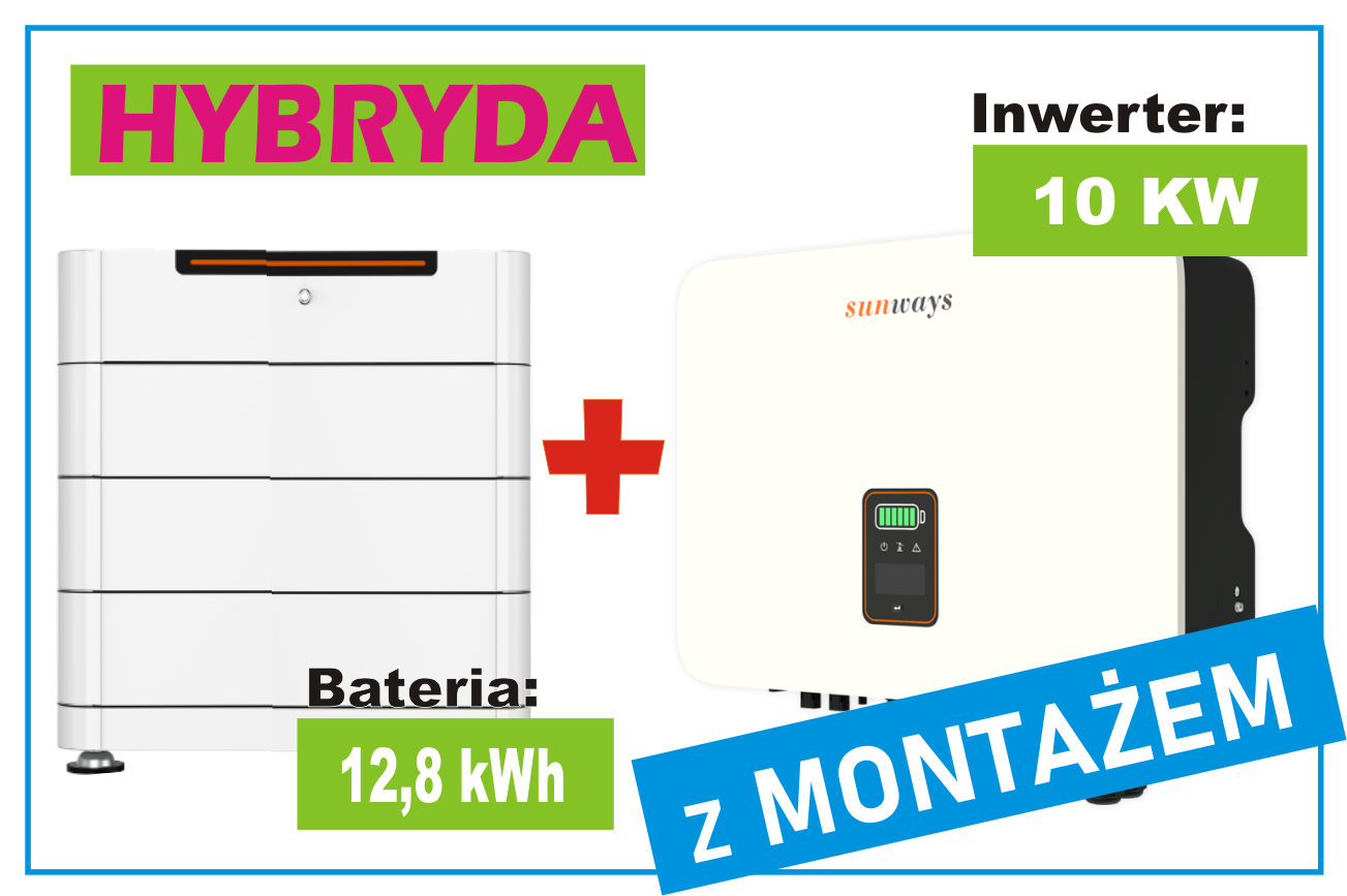 Zestaw, Inwerter hybrydowy 10KW + Magazyn energii 12,80 KWh z Montażem