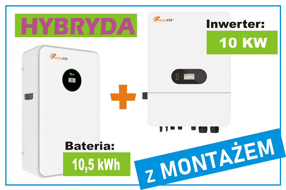 Zestaw, Inwerter hybrydowy 10KW + Magazyn energii 10KWh z MontażemZestaw, Inwerter hybrydowy 10KW + Magazyn energii 10KWh z Montażem
